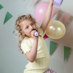 Bluetooth Karaoke set mikrofón a reproduktor FialovýSpievajte a zabávajte sa kdekoľvek a kedykoľvekFialový karaoke set od Lalarma je perfektný pre každé dieťa, ktoré miluje hudbu.