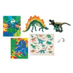 Dinosaury pre vás nebudú mať žiadne tajomstvá! Tento kufrík obsahuje všetko, čo potrebujete na vykonávanie 6 rôznych aktivít na tému dinosaurov. Obsahuje 1 výkopový blok s pazúrom a zubom ankylosaura, 1 malý štetec a 2 hĺbiace nástroje, 1 dreveného stegosaura na zostavenie a maľovanie, 6 nádob s farbou (5 ml), 1 štetec, 2 obrázky podľa čísla na maľovanie, 1 stierací žreb T-Rex na zostavenie a 1 leták s návodom, šablónami a obsahom o dinosauroch. Táto aktivita pomáha rozvíjať zvedavosť a kreativitu a je vhodná pre deti od 7 rokov.