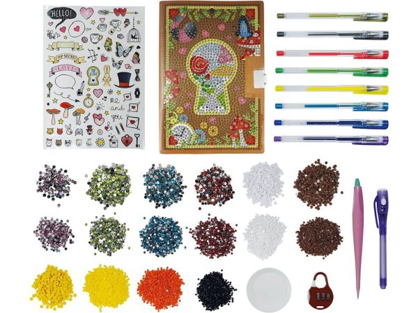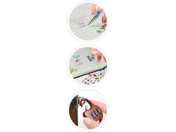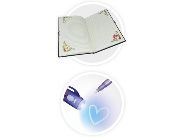 Sada obsahuje tajný zápisník so 120 stranami, vnútornú dekoráciu, ktorú možno spredu ozdobiť trblietavými kameňmi , funkčný kódový zámok pre denník, ktorý si môžete sami nastaviť a zmeniť, UV marker, pomocou ktorého môžete písať neviditeľné správy a zviditeľniť ich UV svetlom, a 12 gélových pier pre farebné a efektívne poznámky.