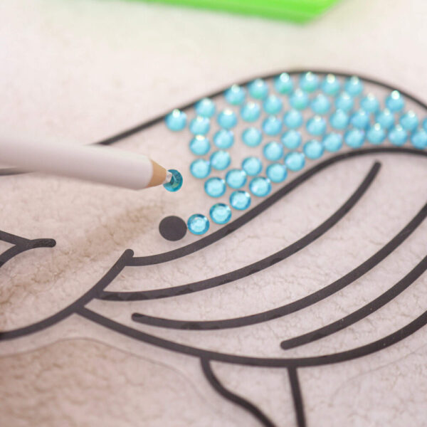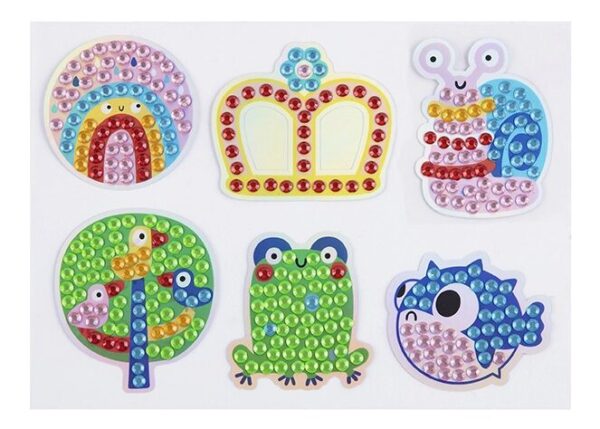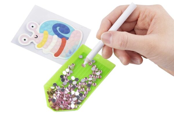 Kamienky sa na podklad nalepujú pomocou 2 špeciálnych pier. V sade nechýbajú ani 4 tácky na triedenie kamienkov. Vďaka tomu je sada vhodná aj ako darček pre súrodencov. Nalepovacie kamienky sú veľmi malé a práca s nimi delikátna, preto je diamantové maľovanie určené približne pre deti okolo 6 rokov.